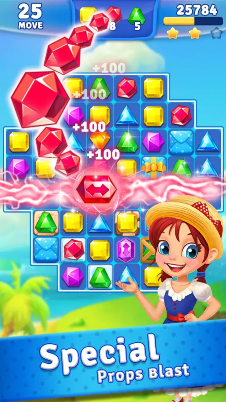 MoreJewel Crush, match 3 puzzle with addictive and exciting adventure, classic jewels match legend. Match and quest jewels in fun gameplay to complete the mission goals. It has a beautiful and cute gamestyle, ideal for girls to play with their families and to play in anytime and anywhere! Be the jewel stars and unlock the castles in this legend game. Designed for the beautiful girls. Easy to control, fun to play, beautiful graphics! Just swap & match with your finger! How to play: - You have a specific list of goals in each level. - Match 3 or more identical gem-jewels in a line to crush them. - Match 4 in a row or column to create special direction jewels. - Match 5 in T or L to create special jewels bomb. - Match 5 in a line to create special color jewels. - You must have the sharpest mind. Learn to use special jewels. - If you have any difficulties passing a level you can use helpful props. - Combine special jewels to make huge chain reaction to help you pass the level. Special highlights: * Direction Jewels: it will can destroy all jewels in a line. * Jewels Bomb: it will can destroy all jewels around it. * Color jewels: it can destroy all jewels with the same color of selected gem. * Super value gift: Diamond and props power-ups help you pass level * Less moves, More Stars, Higher scores! Crush all jewels! * Pass the levels and try to get all stars in each level. * Try your best to make super combinations with super match! Colorful crushing effects and well designed puzzles for you to play in anytime and anywhere! Features: ★ Designed for the beautiful girls ★ Easy and free fun to play, challenging to master. ★ 1500+ well-designed puzzle levels. ★ Daily free bonus in the games. ★ Helpful magical bossters to win jewels stars. ★ Games you can play offline. ★ No WIFI? No Problem! ★ Classic jewels match 3 game. Let's go Matching 3 Jewels and crushing never stop!