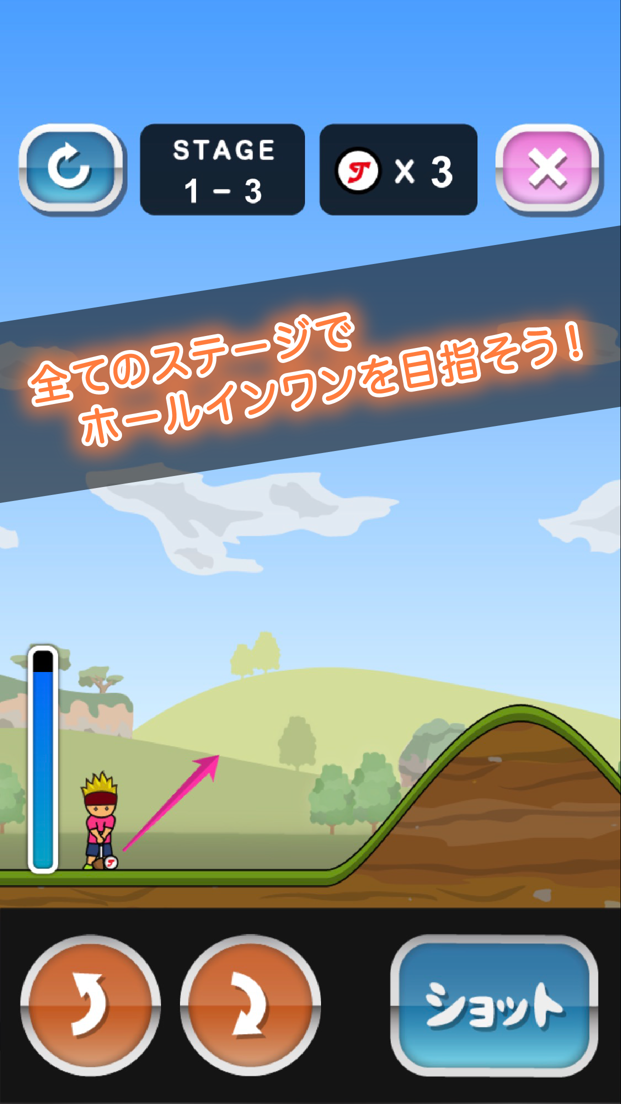 More無料で誰でも簡単に遊べる人気アクションゲームの決定版! 全てのステージでホールインワンを目指そう!! 暇つぶしに最適なゴルフアクションゲームです。 【遊び方】 矢印ボタンで角度を調整します。 ショットボタンを押すとパワーゲージが動きます。 再度ショットボタンを押すとショットします。 操作は簡単です。子供から大人まで誰でも楽しく遊べるアクションゲームです。 ■こんな人におすすめ! 無料で簡単なゲームを探していた 暇つぶしゲームを探している アクションゲームが得意 アプリは無料で楽しみたい 暇を脱出したい 【トニーくん公式ツイッター】 🔗link