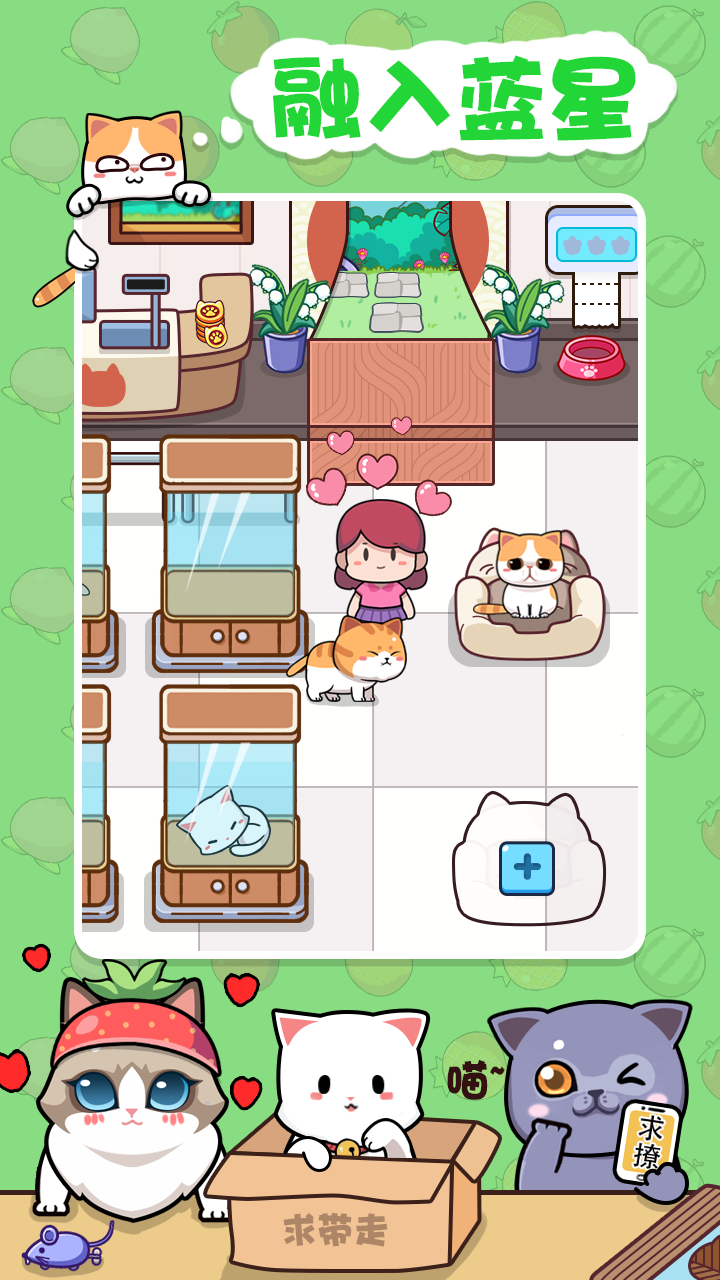 More《蓝星猫猫教》是一款以猫咪为主题的单机休闲游戏,核心玩法是通过配置不同的材料(水果和鱼),产出不同品种的猫咪。猫咪名字沙雕,画风清奇,玩家可以免费解锁各种原创角色和家具。游戏具有一定的策略性,购买原料和售出商品的价格都是波动的。玩家可以雇佣一些“帮手”增加收益,也可以通过满足客人的“特殊要求”获得收益加成。