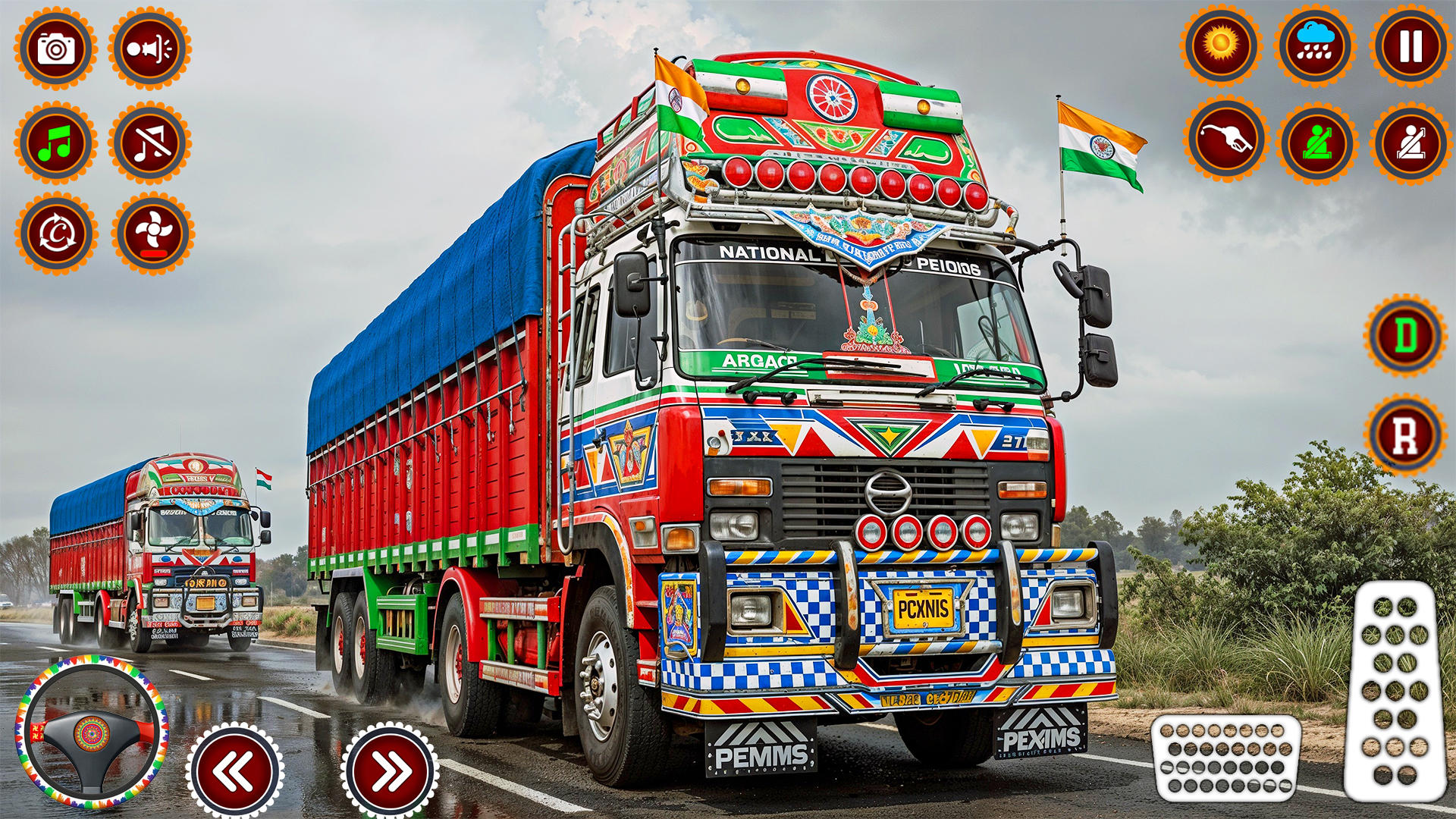 MoreExperience the rugged terrain and transport heavy cargo across challenging off-road routes in an indian Truck. Drive powerful, authentic Indian trucks through mountains, forests, and rivers. Feel the thrill of realistic truck physics, dynamic weather, and immersive environments inspired by the off-road and highland regions of India. This truck is designed for heavy-duty hauling across difficult terrain. Whether you are transporting goods through remote areas or navigating tough landscapes, the Indian Cargo Truck combines durability with cultural flair. This Indian city truck is prepared to handle any load, on any road, at any time. In this truck game, your mission is to complete specific objectives. Level 1: Drive the truck to the fuel station, refuel it, and park at the designated truck stand. Level 2:Bring the truck to transport the fruit to the market. Level 3: Drive an indian cargo truck loaded with wood to reach the furniture market. Level 4: Reach the showroom to bring the tractor by driving an off-road indian truck. Level 5: Drop off the construction material at the construction site.