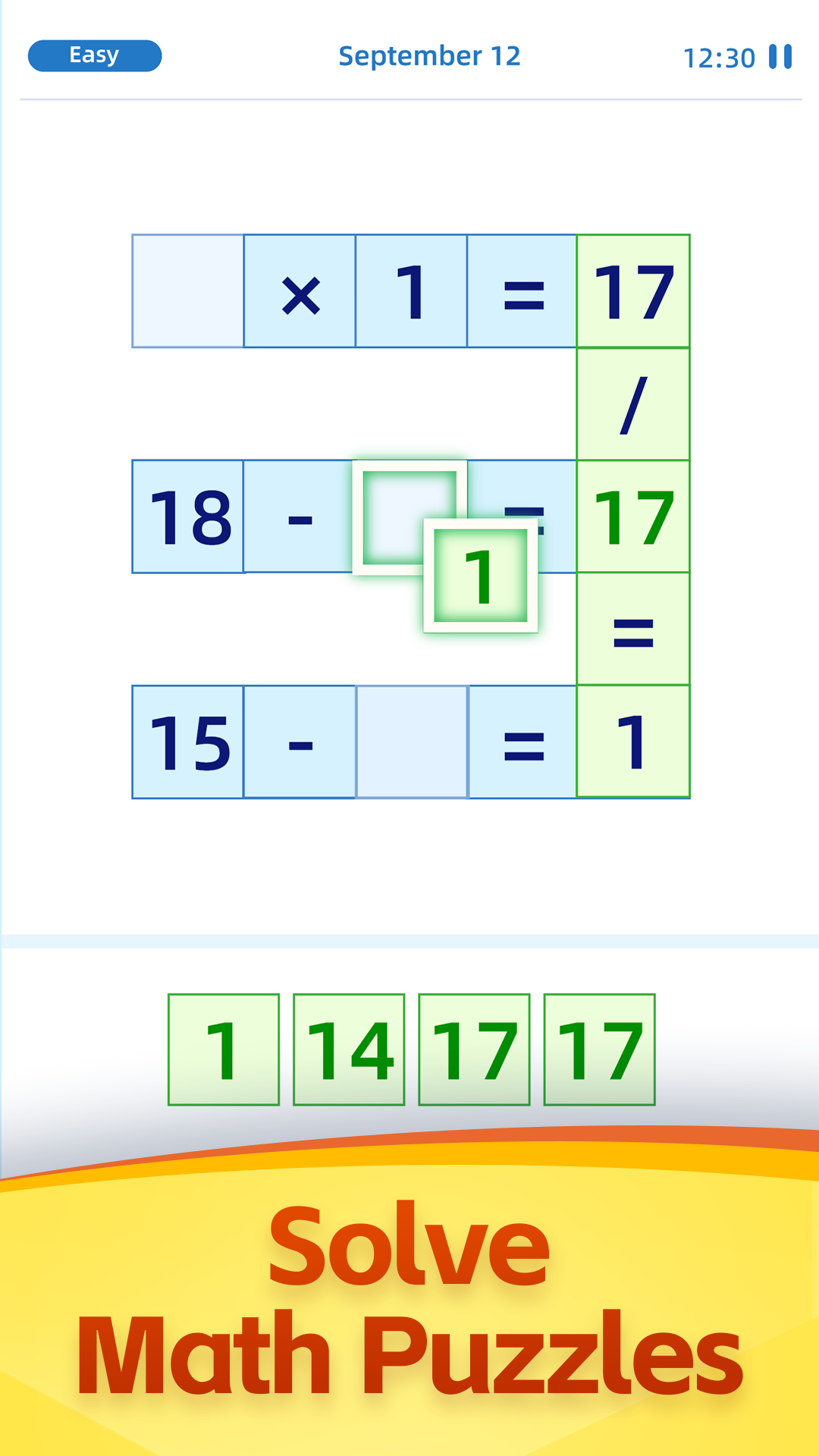 MoreMath Cross Number Puzzle game is an entertaining and captivating math puzzle that challenges your problem-solving abilities. Offering a range of levels and difficulty settings, it caters to different math skill levels, ensuring the perfect challenge for everyone. In the game, you’ll tackle a series of math puzzles using operations like addition, subtraction, multiplication, and division. Applying logic and critical thinking is crucial to determine the most efficient way to solve each puzzle. Math Cross Number Puzzle offers a fantastic opportunity to stimulate your brain and enhance your math skills! Key Features: Utilize addition, subtraction, multiplication, and division to solve the puzzles. Prioritize multiplication or division before performing addition or subtraction. Highlights: Select your preferred difficulty level from Easy, Medium, Hard. Engage in the Daily Challenge, where tackling one cross math puzzle games per day keeps your mind sharp. Math Cross Number Puzzle offers an excellent opportunity to challenge your problem-solving abilities while having fun. Why wait any longer? Try Math Puzzle Cross Number Game today! The game includes a variety of power-ups designed to help you solve puzzles more efficiently. These power-ups offer hints, advanced notes, and more. With such features, this math puzzle game promises hours of engaging and challenging entertainment. You’ll be on your way to mastering Math Cross Number Puzzle and becoming a math expert before you know it! Enjoy these math puzzles and give your brain a workout today! Download and play this engaging math puzzle game now!