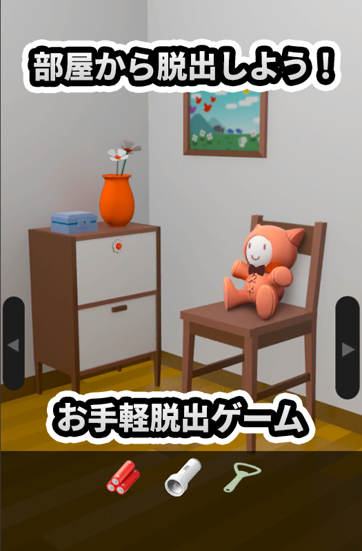 More目を覚ますと部屋に閉じ込められていた! 部屋を探索して脱出しよう。 オーソドックスな脱出ゲームです。 暗号を解いてクリアを目指してください。 分からない場面で?ボタンを押すと ヒントを表示します。 ■ゲームの遊び方 部屋を探索・アイテム探し・ナゾを解いて脱出を目指そう。 ・タップでアイテムを選択します。 ・アイテムを選択してもう一度タップするとアイテムを拡大表示します。 ・拡大表示すると調べたり他のアイテムを組み合わせることができます。 タイトル画面とプレイ中の歯車ボタンから サウンドのON・OFFができます。 ■BGMサウンドクレジット oo39.com ポケットサウンド MusMus