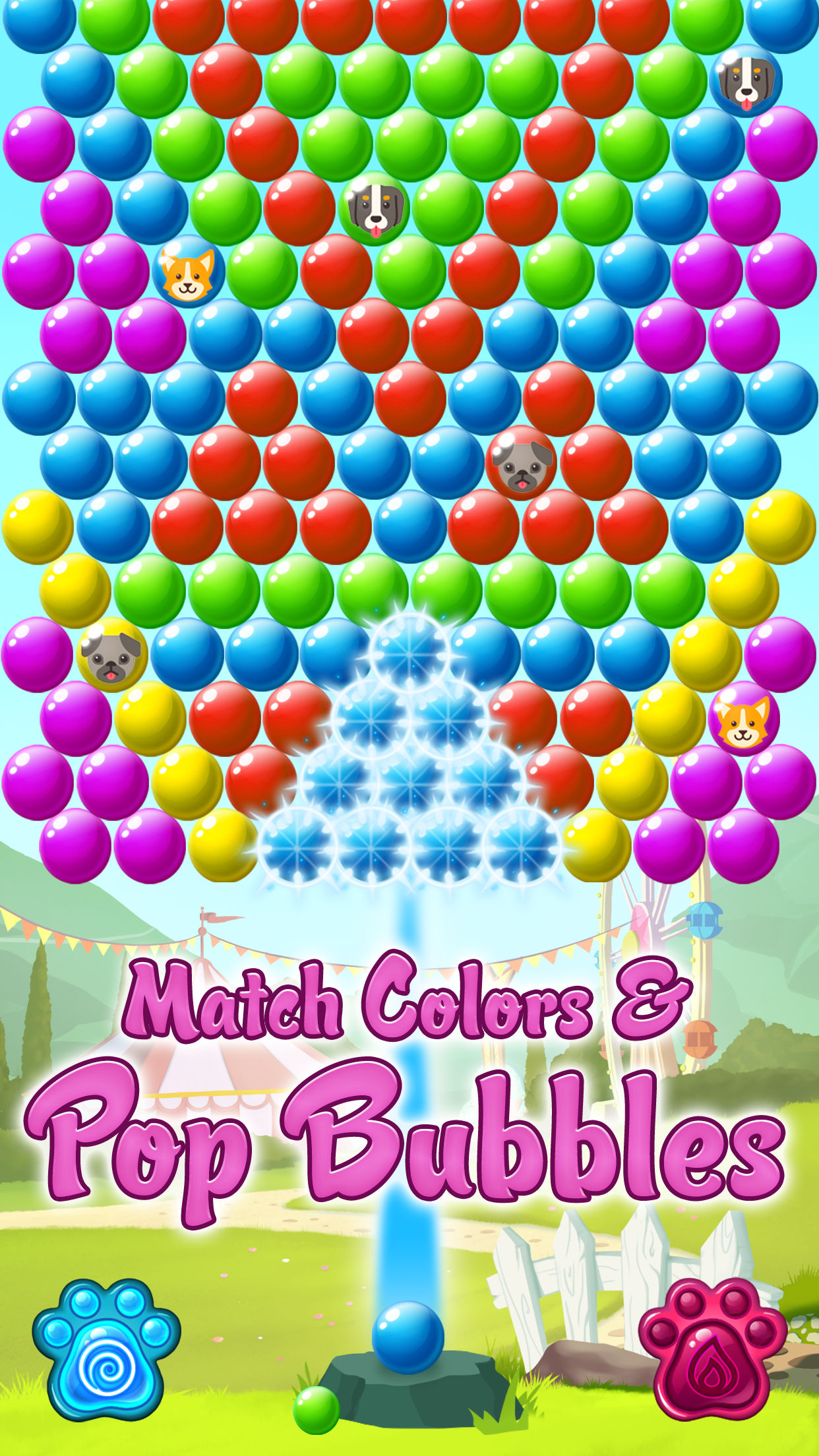 MoreHave a blast at the bubble shooter exciting fair! Pop the colored balls and rescue the animals! Match 3 colors and pop your way to the top beating all the bubble packed challenges. Play now, clear the board from all the bubbles and rescue the animals in this fun free bubble pop game. Make combinations of 3 or more the same colored bubbles to pop the combo and win points. Remember: the more bubbles you remove from the board in one shot, the higher score you’ll get! How to Play: 1. Tap where you want to shoot the bubble. 2. Rescue the cute animals by popping the bubbles that trap them. 3. Plan your path carefully and overcome the obstacles. 4. Explore hundreds of handcrafted levels. 5. Earn exciting boosters that will help you in your quest. Features: 1. Beautiful graphics and effects. 2. Thrilling bubble shooting adventure! 3. Bubble swap is completely free. 3. Amazing levels filled with fun puzzles. Animal Rescue Pop is a fun and addictive bubble shooter you simply won’t stop playing! Enjoy a fun day at the fair, pop bubbles, complete the missions and clear levels. You definitely don’t want to miss the bubble popping incredible adventure!
