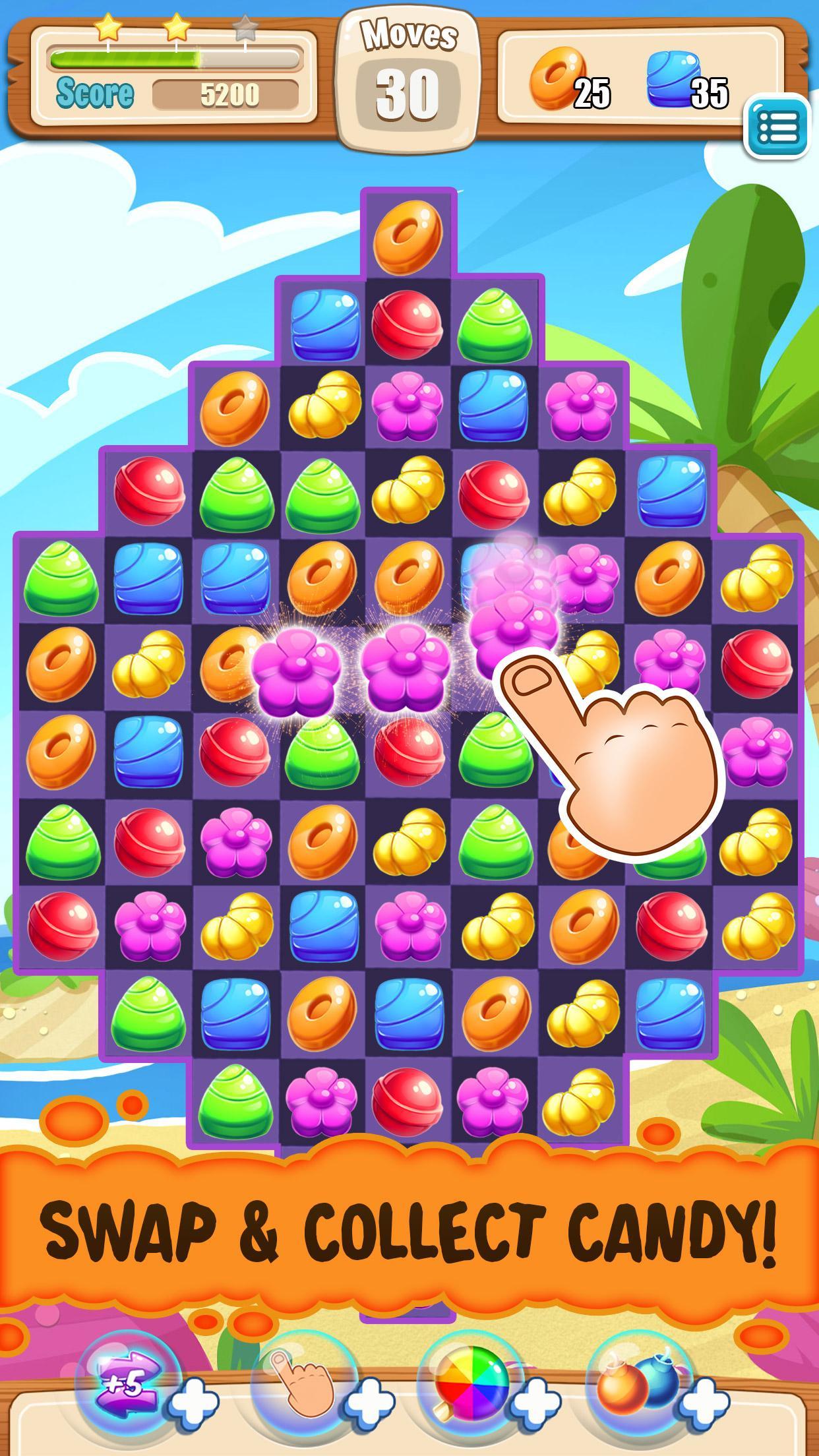 MoreGet ready for an addictive candy matching puzzle game! Swap and crush delicious sweets and journey across colorful settings in this exciting match-3 awesome adventure. Take a trip to the sunny candy island, explore delicious levels, defeat the obstacles and solve all the puzzles. Download and play Candy Island Match 3 game for FREE, share the joy with friends and win fun rewards! - Move and match 3 sweet candy pieces to create a line crush. - Blast through the levels and solve the delicious match-3 puzzles! - Unlock special boosters and bonuses. - Clear the board from all the candy. - Reach high scores using fewer moves. - Complete the missions set at the beginning of each level and beat obstacles. - Explore hundreds of colorful puzzle levels. Join the fun adventure! - Try to link 4 or 5 items to earn powerful boosts and generate massive explosions. - Play anywhere ad anytime: it’s completely free and no internet connection is required. - Master all the sweet challenges! - Win awesome rewards and beat levels. Play and enjoy the most addictive gameplay!