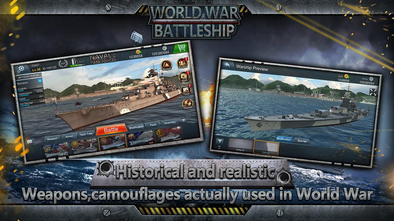 Join the War! The World War Battleship is a free-to-win mobile MMO action warship shooting game. You will return to WW2 Naval battle, you can join the United States, England, Japan, Germany, France, Soviet or Italy's Navy.