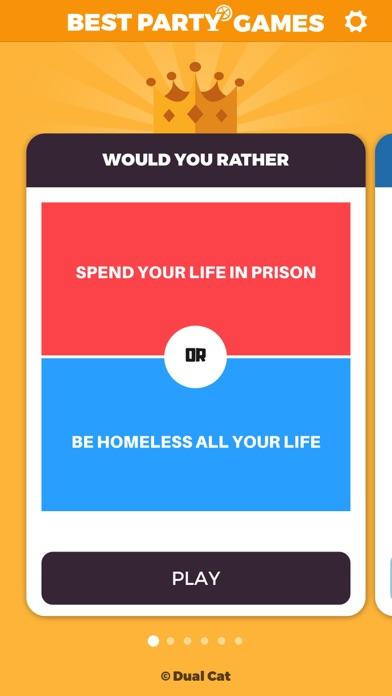 MoreWould you rather be the richest person ever or be poor and immortal? You have to choose! Not easy, huh? Make your choice and compare your answers with others! With 3 000+ impossible choices Would You Rather is the funniest game to break the ice at a party or to laugh by yourself on the bus! "Would You Rather is the best game to get to know people around you in less than 15 minutes". So, would you rather download Would You Rather? and have a lot of fun or not download it and miss out on a good time? :) INFORMATION - Please note that we removed hardcore category in order to be compliant with App Store policies. DISCLAIMER - Warning, Alcohol abuse is dangerous for health. Drink in moderation. - This game is humorous, the questions do not represent any challenge to achieve. - Dual Cat can not be held responsible for any accidents, problems or consequences related to the use of the game. A BUG? A SUGGESTION? - In case of bug do not hesitate to contact us at [email protected], we will respond as soon as possible. - Do not hesitate to send us your suggestions of questions directly on the application so that we can add them. SUBSCRIPTION TERMS Weekly Full Access Membership offers $1,99 weekly subscription for unlocking games, specials categories, features and removing ads. This is an auto-renewable subscription. The payment is charged to your account after confirmation. The subscription is renewed unless you turn it off 24 hours before the period ends. Your account will be charged for renewal as well. The prices are established for United States customers. Pricing in other countries may change and actual charges may be converted to your local currency. End of trial and subscription renewal: • Payment will be charged to iTunes Account at confirmation of purchase • Subscription automatically renews unless auto-renew is turned off at least 24-hours before the end of the current period • Account will be charged for renewal within 24-hours prior to the end of the current period, and identify the cost of the renewal • Subscriptions may be managed by the user and auto-renewal may be turned off by going to the user's Account Settings after purchase • Any unused portion of a free trial period, if offered, will be forfeited when the user purchases a subscription to that publication, where applicable Canceling a trial or a subscription: • You can turn off the auto-renew for the subscription whenever you want to through iTunes. For more information, please visit 🔗link If you have any questions, feel free to contact us at [email protected]