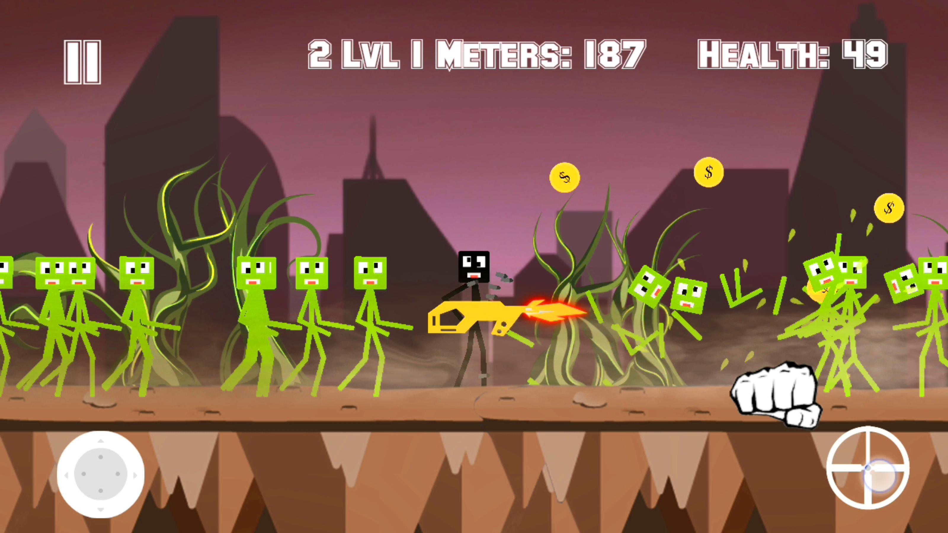 もっとYour friend was kidnapped on an unknown planet. You flew to this planet to find and rescue your friend Stick. You will have a whole store of different weapons, which you can buy with the money earned. You can shoot and fight with a crowd of zombies Stickman. On the way, you will meet various traps and crashed boxes with bonuses. At the end of each level you will be attacked by a zombie boss. Complete 10 levels and save your friend! For watching the video you can get a super golden weapon with which you will be invincible! The game is free.