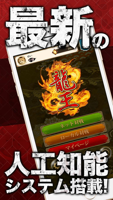 もっと【最新AI搭載の初心者でも楽しく遊べる将棋アプリです!】 ***将棋龍王は様々な特徴があります*** ・コンピューター(最新AI)との対戦も楽しめます!《勝ちきれ将棋・詰将棋》も充実! ・無制限で指し放題です! オンライン対戦ではゴールドを貯めて、No. 1を目指しましょう! オンライン対戦では、誰もが楽しめるように《初級広場・中級広場・高級広場》と3つの段階に分けています。 初心者・上級者関係なく誰でも楽しく遊べる仕組みになっています。 ・将棋に関するニュースや動画も楽しむことができます。 ・将棋が好き、将棋に興味がある、暇つぶしの方に超オススメです! ***最高の将棋思考エンジンを搭載*** ・将棋に関するすべての情報をインプットさせているので百万通りの打ち筋を持っています。 ・将棋思考エンジンとの緊迫した対局に闘志を燃やせ! 将棋はただ駒を並べるだけではなく、とても頭を使うゲームです。 初心者から上級者まで、皆さんやりこんで楽しい将棋ライフを送ってください。