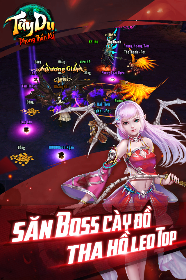 もっと“Tây Du Phong Thần Ký là tựa game tiên hiệp nhập vai duy nhất lấy cảm hứng về chủ đề Tây Du Ký và Phong Thần Bảng ra mắt đầu 2018, hứa hẹn mang tới một làn gió mới lạ trong thị trường game online đã bão hòa kiếm hiệp, võ hiệp. Bằng những tính năng đặc sắc của MMORPG truyền thống và là game duy nhất trên game mobile hiện tại sở hữu như PK 24/7 ngay cả trong thành chính, đồ sát rớt đồ Hoàng Kim hay cho phép người chơi giao dịch trực tiếp với nhau không mất phí, đấu giá tự do toàn server… trò chơi này đã tạo được dấu ấn đặc biệt trong cộng đồng game thủ Việt Nam” – SendorGrimer – BTV Gamek.vn SỰ KẾT HỢP HOÀN HẢO CỦA TÂY DU KÝ VÀ PHONG THẦN BẢNG – TỰA GAME TIÊN HIỆP KHỞI ĐẦU 2018 Tây Du Ký và Phong Thần Bảng là hai bộ tiên hiệp lớn nhất và quá đỗi quen thuộc với cộng đồng game thủ. Sự kết hợp “vô tiền khoán hậu” giữa hai chủ đề này trong Tây Du Phong Thần Ký sẽ đem lại những trải nghiệm cực kì bất ngờ cho người chơi để khám phá thế giới tiên hiệp huyền ảo và gần gũi như trong những bộ tiểu thuyết hay như những tác phẩm điện ảnh. GAME DUY NHẤT CHO PHÉP NGƯỜI CHƠI GIAO DỊCH TRỰC TIẾP Tây Du Phong Thần Ký mang tới game thủ hệ thống train quái ra item giá trị và cho phép người chơi thoải mái giao dịch trực tiếp với nhau, hoàn toàn miễn phí. Người chơi có thể cày đồ, săn boss mang bán hoặc đấu giá để đem lại lợi nhuận thông qua giá chênh lệch. Trở thành con buôn, chơi game không cần nạp thẻ chưa bao giờ đơn giản hơn thế. THỎA SỨC PK 24/7 MỌI LÚC MỌI NƠI Trong Tây Du Phong Thần Ký, không hề có chế độ hòa bình mà chỉ có PK mọi lúc mọi nơi. Ngay cả trong thành chính cũng không phải nơi an toàn cho bạn. Muốn sống sót trong trò chơi này, bạn phải trở nên mạnh mẽ hơn, bản lĩnh hơn và luôn chiến đấu bên cạnh động đội trong các hoạt động PvP ngàn người. CÔNG THÀNH CHIẾN KHỐC LIỆT NGÀN NGƯỜI Một trong những sự kiện lớn nhất trong Tây Du Phong Thần Ký chính là Công Thành Chiến không giới hạn người chơi cùng tham gia, tạo nên một trận chiến cực kì lớn và quy mô. Nơi thể hiện sức mạnh và đẳng cấp của từng bang hội, cũng như những cao thủ hàng đầu trong server. CÁC TÍNH NĂNG HẤP DẪN KHÁC Tiên Vực Chiến Hỏa Diệm Sơn Phong Thần Chiến Boss Thế Giới Hệ thống cánh đặc sắc cực ngầu Tọa kỵ là thú cưỡi truyền thuyết Đốt lửa trại