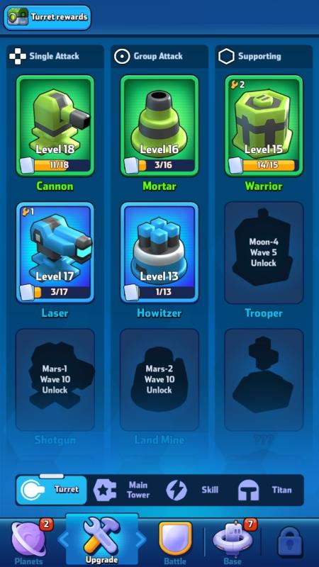 ป้อมปืนมีหลากหลายชนิด สามารถเลือกอัปเกรดและเลือกวางเพื่อป้องกันฐานได้