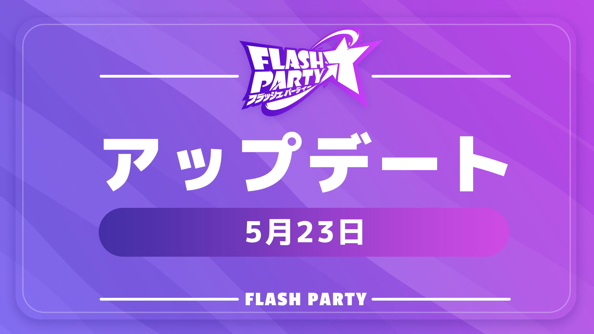 いつも遊んでいただきありがとうございます。5月23日09:00-11:00に『フラッシュパーティー』のメンテナンス作業を実施いたします。以下の内容をアップデートいたします。