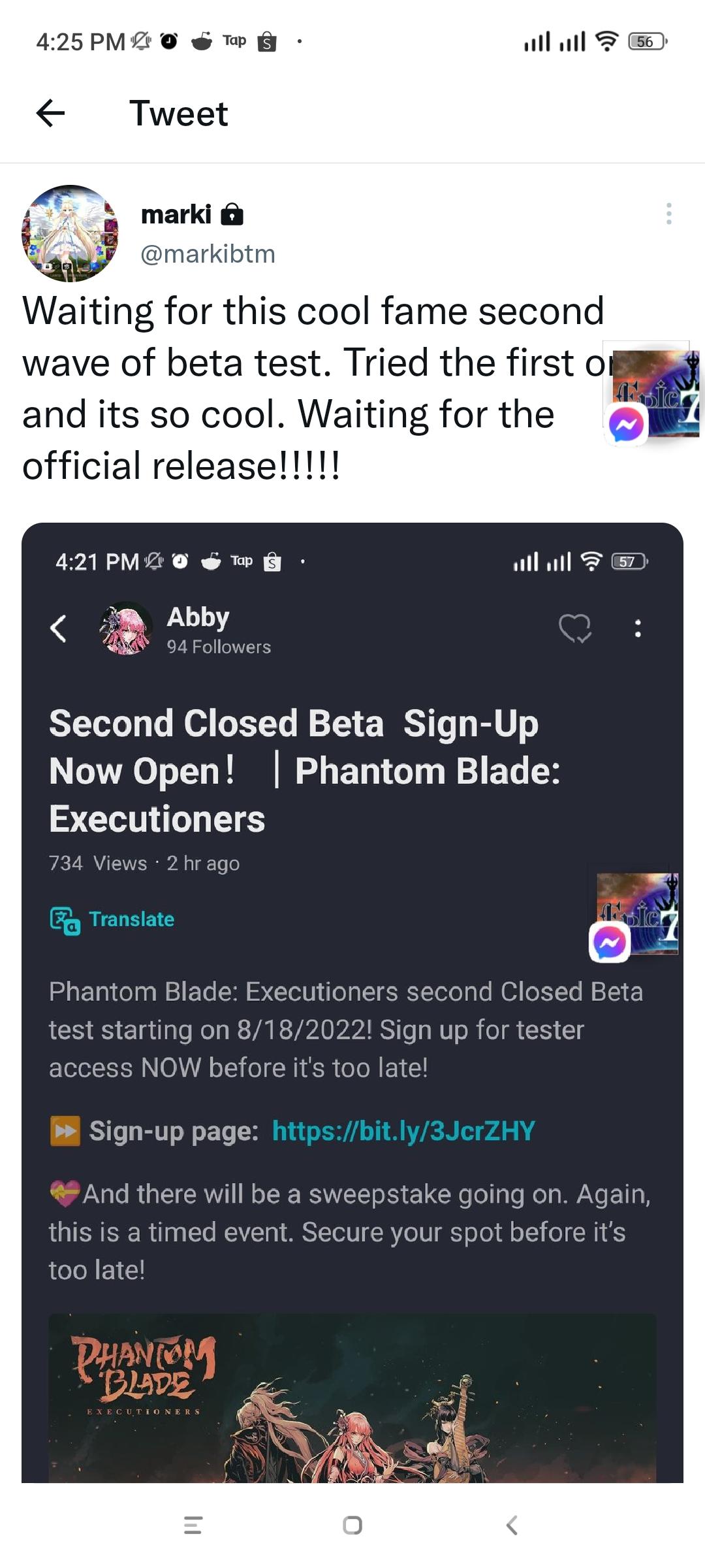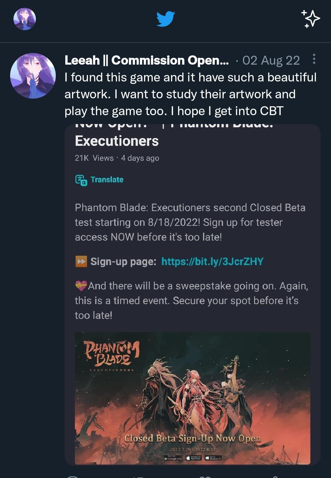Step 1: Follow the official TapTap page of Phantom Blade: Executioners.