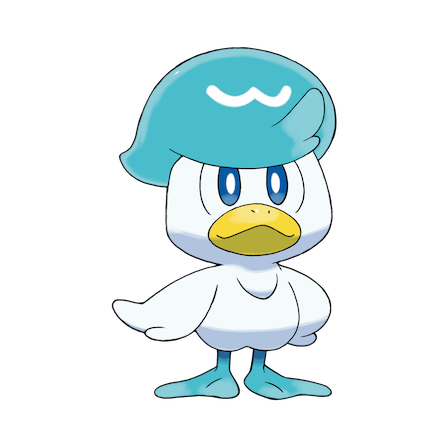 Quaxly is the newest water-type starter, and as one would assume by the name, the Pokémon is a duck. By far, one of the most wide-eyed, cute ducks I’ve ever seen. Quaxly has strong legs, hates getting its head dirty, and is always covered in gel secreted by its feathers. The Pokémon also seems to be fixated on styling its feathers most of the time.