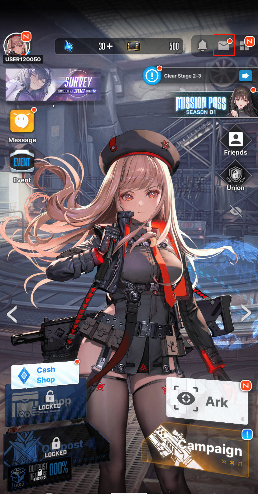 4. Click the Mailbox icon (✉️) on the top right. Check the mail and claim your rewards.