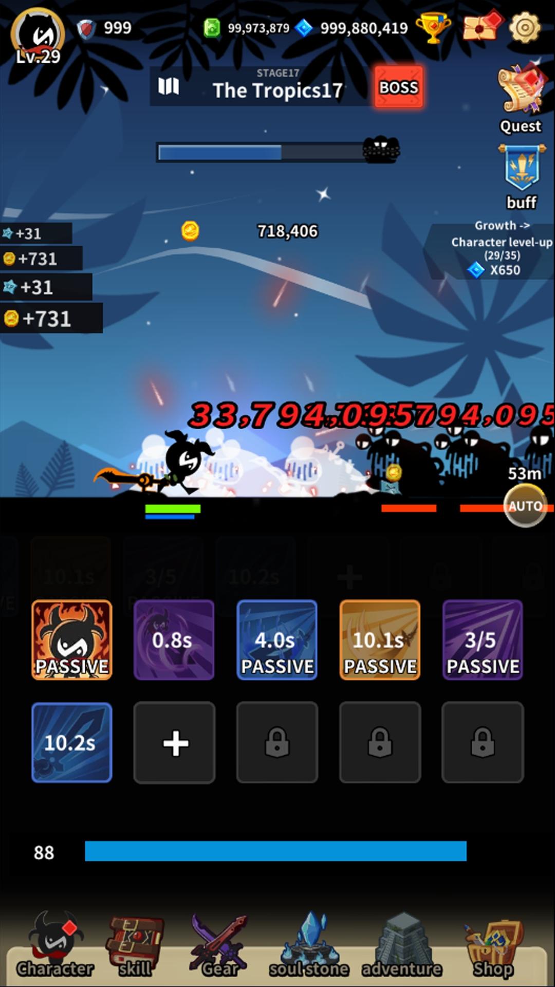 It’s unlucky the game still can’t be downloaded in my region and I'm so excited about the variety of character costumes. Since the character is black, the costumes will stand out. I have never seen an idle game where the panel takes this much space; it looks like about half the screen LOL. The soul stone indeed looks adorable. I hope this game will be available soon.