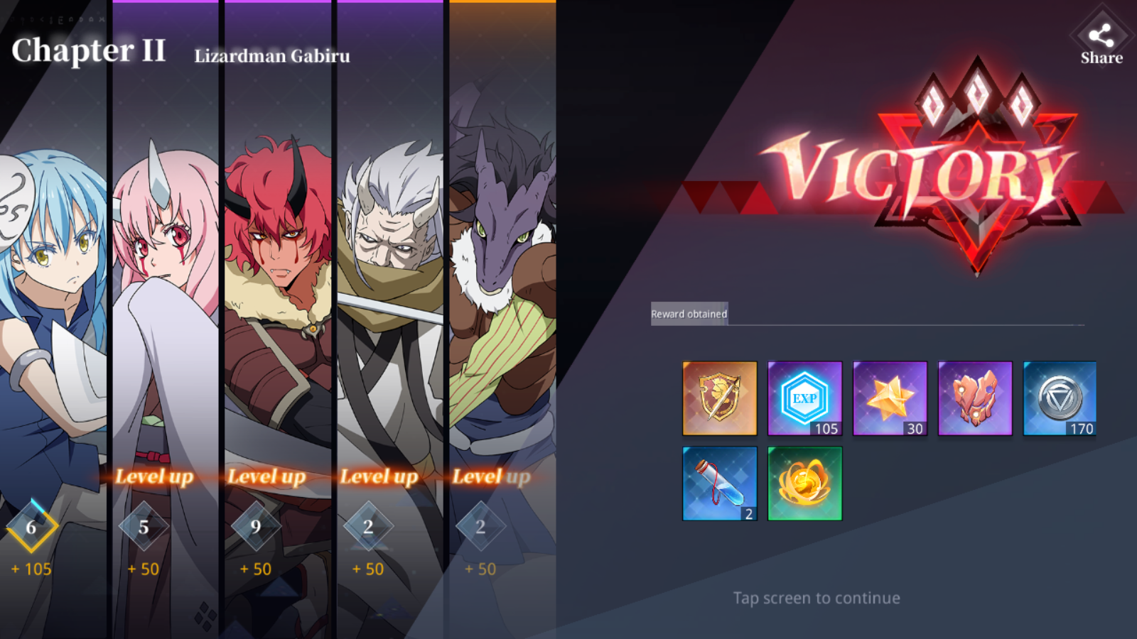 [/b]The gameplay was very familiar, as it reminded me of Fate/Grand Order (FGO). It very much follows FGO’s formula of turn-based JRPG-style battles coupled with getting powerful characters through a Gacha or lottery system. It starts off with the climax of Shizu’s arc, with Rimuru facing off against Ifrit. It would then continue with a tutorial stage that is based on the Oni arc, where Rimuru meets Shion, Shuna, and the other Ogres.