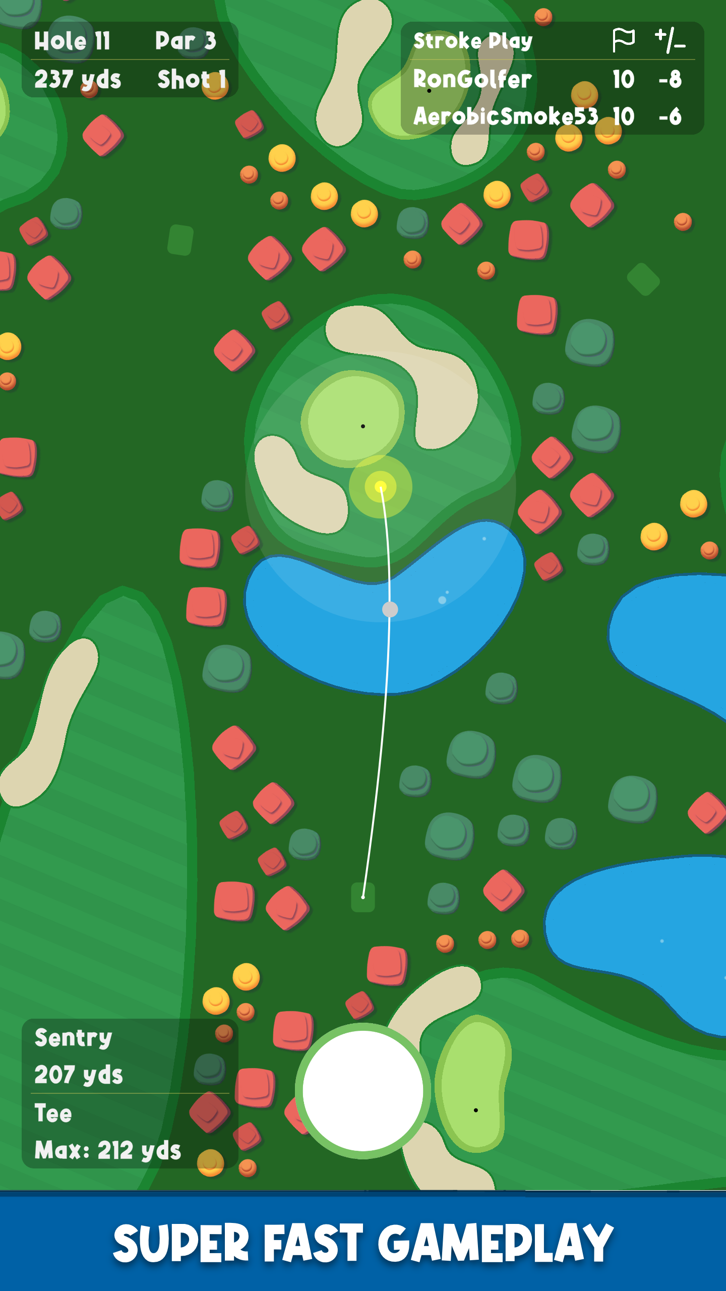 เพิ่มเติมSimple fast top-down 2d golf game. Fast gameplay. Play a full round in under four minutes! Time to tee off! Play the new hot mobile golf game that's free to download! FAST & FUN GAMEPLAY - Super fast play a full round in under four minutes. - Automated short game. Don't waste time on chips and putts. - Simple, beautiful and fun golf game. - Play massive multiplayer Battle Royale mode. COMING SOON Currently in beta early release. Here are the features we'll be adding during the beta: - Play against friends and competitors: match play and stroke play. - Play in tournaments, match play, Ryder Cup style competitions. - Unlock and upgrade your clubs over time.