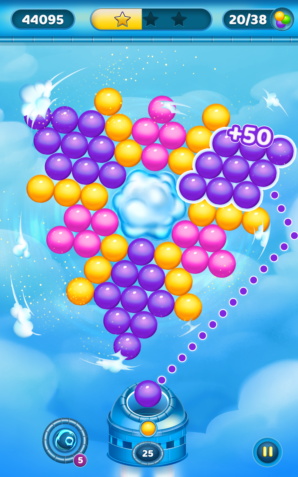 更多Are you ready for a new whirling sensation game? Cloud Spin is a bubble shooter game with a twist. Every shot makes the board spin and creates new challenges. It’s not a typical bubble blasting game but a super fun and unique game with a spinning board, amazing effects and powerful shooter. Ready? Take aim, here’s how you play: • Shoot and explode balloons. • When you make a bubble pop, the board starts to spin, and a new challenge comes to your way. • Pop all bubbles and develop strategies based on the constant spinning and the new balls in play. • Hit matching balloons to crash them down, make wall shots to make major blasts This bubble spinner game challenges you to use logic, sharpen your matching skills, and blast the balls. It’s addictive, it’s amazing, and we know you’re gonna crush it! Tip to Help You Beat All Levels Remember, this is a physics-based bubbles puzzle, so when you aim and shoot, keep the chain reaction in mind. When one of the balloons pops, lots of them start popping in massive explosions. Watch and discover the key to this super fun game. Bubble Spinner Winning Features - No WiFi: Play the best bubbles game wherever you go since Cloud Spin needs no internet connection. Play it online or offline anytime, anywhere. - Brain-challenging: This test of logic helps train your brain as you deploy tactics, and plan moves. Really build skills with these great mind boosters. - Stress relief: Most games can’t manage to be fabulous and relaxing, but Cloud Spin is special! Play and enjoy a fun way to relax. - Free: Did we mention that these fantastic puzzles are totally free? Bounce, whirl, and spin through hundreds of levels of amazing floating boards that’ll keep you having a blast for hours. Download today to your Android device, and start the bubble shooting fun!
