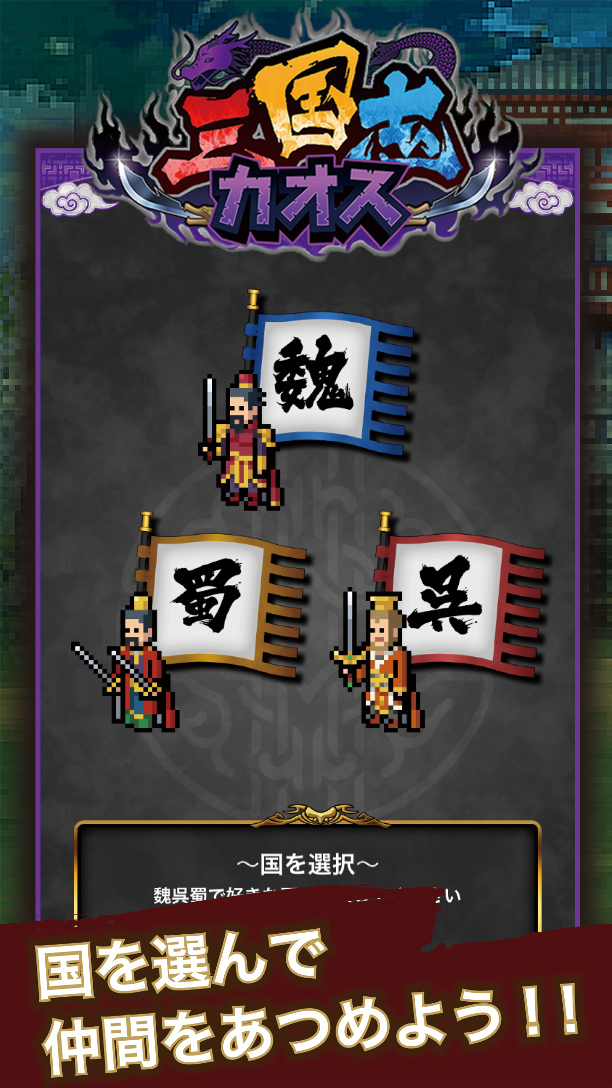 更多お気に入りの三国志キャラで邪悪なモンスターをやっつけよう! 最大ダメージは1000000000000000000000000・・・超え!? タップ系RPG × 三国志の世界へようこそ! ◎タップだけの簡単操作! 画面をとにかくタップしてモンスターを倒そう、 仲間は自動攻撃してくれるよ! ◎ドット絵で再現された仲間は全部で90体!! 「魏」「呉」「蜀」でそれぞれ30体ずつ、 キャラクター1体1体に個性を出してます! ◎どこまでも続くステージ 主人公や仲間をレベルアップさせて、 誰もみたことのないステージを目指そう! 【素材提供】 キャラクター・背景:ドット絵製作所 様 モンスター:【Rド】様 神器:Denzi 様 (🔗link)