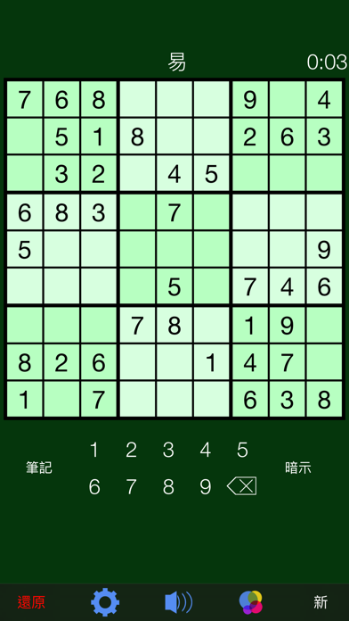打發時間,而你與這個經典的數獨遊戲挑戰你的頭腦。乾淨簡單的佈局很容易讓小時玩的時間。 目標很簡單,填補了9×9格與數字使每行,列,而九個3×3子網格包含了所有的從1位到9。 數獨·特點: - 三級(易,中,硬) - 記筆記的能力 - 提示(填寫時,你被卡住失踪數) - 指導/建議數(數量提供建議,為每平方米) - 個人統計 - 遊戲中心與排行榜和成就 可以肯定今天下載的心態挑戰樂趣