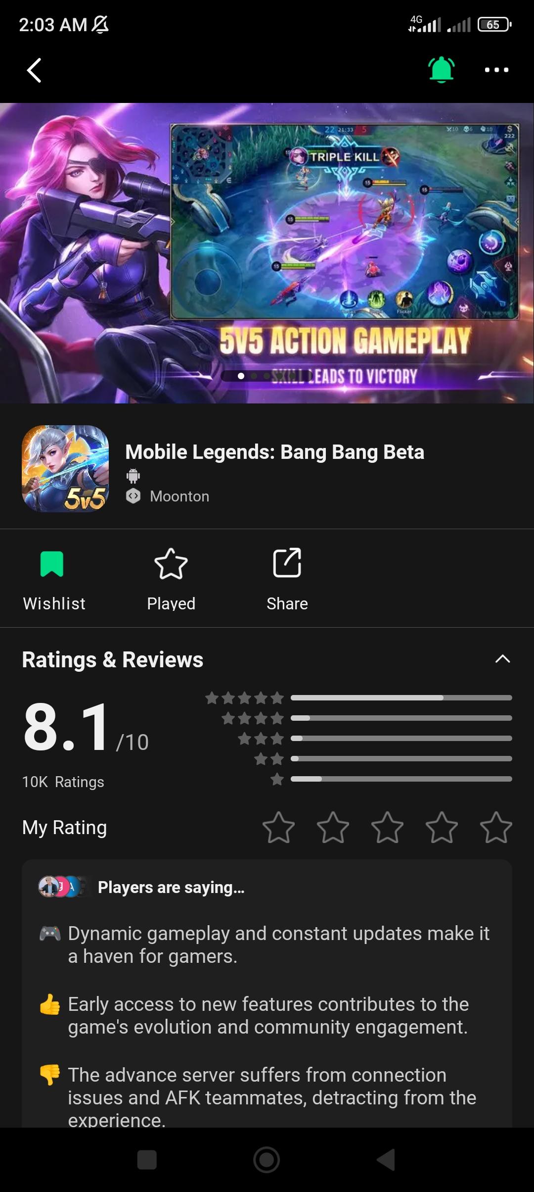My Favouite Game is Mobile Legend.I have been playing the game for 3 year.So I wanna trying play advanced server please sir.